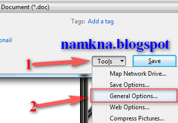 Lúc Save, bạn để ý có 1 cái chỗ có chữ Tools. Click vào đó sẽ xổ ra 1 menu, chọn General Options: