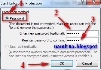 Một hộp thoại hiện ra đòi nhập password bảo vệ. Bạn nhập và nhập lại lần thứ 2 để xác nhận. OK.